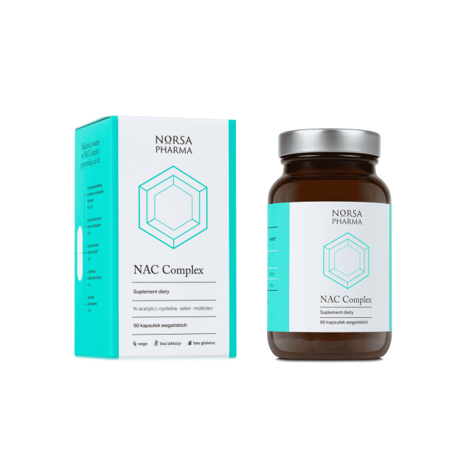 NAC Complex zawiera acetylowaną formę aminokwasu cysteiny w postaci N-acetylo L-cysteiny oraz kofaktory selen i molibden.